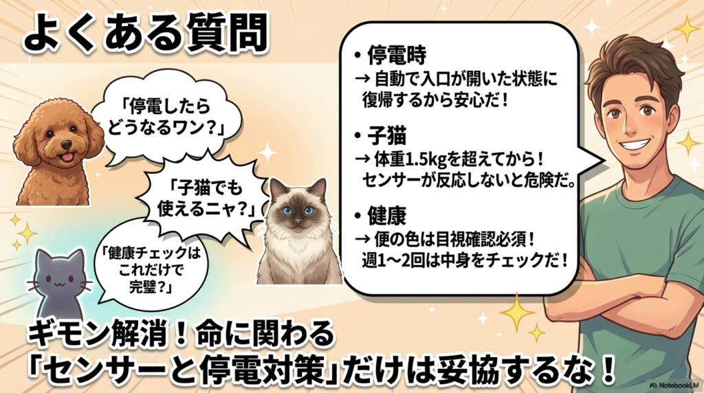 • 手動トイレをすぐ捨てるな:慣れさせ期間中は並行運用必須。獣医推奨のトイレ台数は「頭数+1」。全自動+手動の併用はむしろ理想的な環境だ