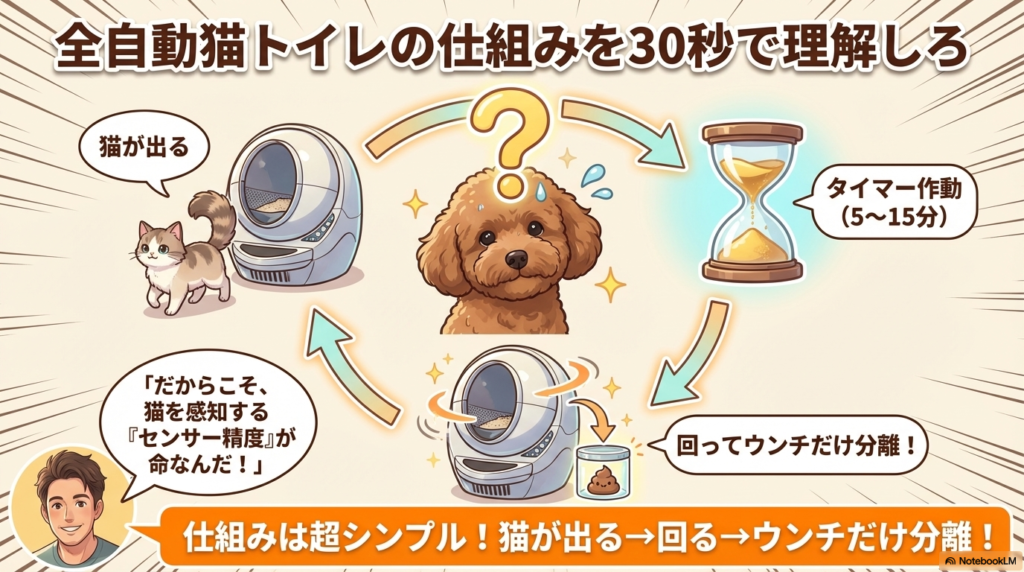 だからこそセンサーが命だ。猫がまだ中にいるのに回転したら大事故になる。安い製品ほどセンサー精度が落ちるから、ここは絶対ケチるなよ