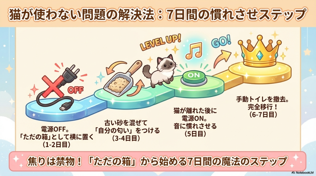 猫が使わない問題の解決法:7日間の慣れさせステップ