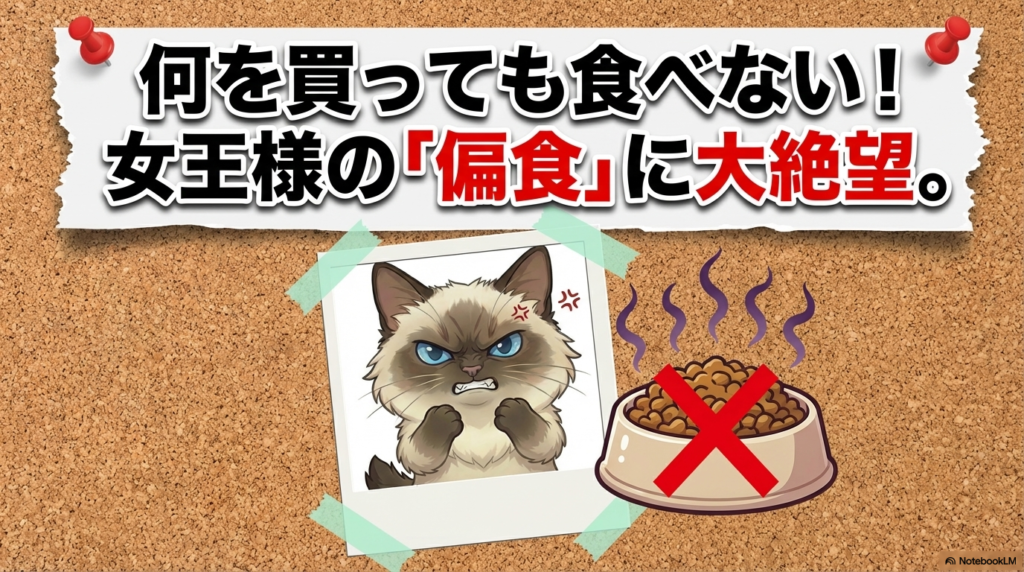 猫を飼ってる人なら、この絶望感わかるだろ?「何を買っても食べない」「高いフードも安いフードも関係ない」「もうチュールしか食べてくれない」。猫の偏食って、犬の比じゃないんだ。