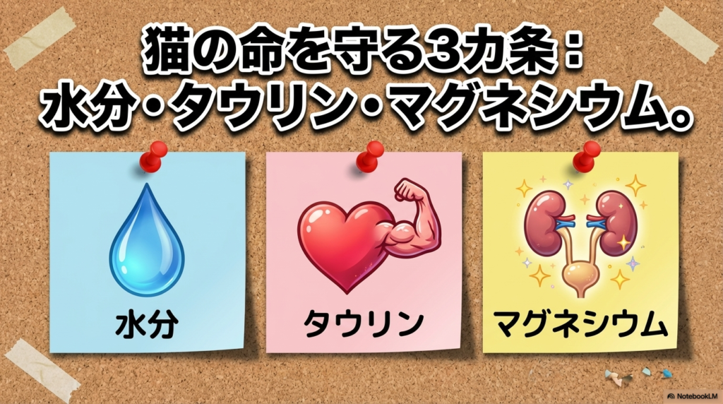 猫特有のチェックポイント|水分・タウリン・マグネシウム