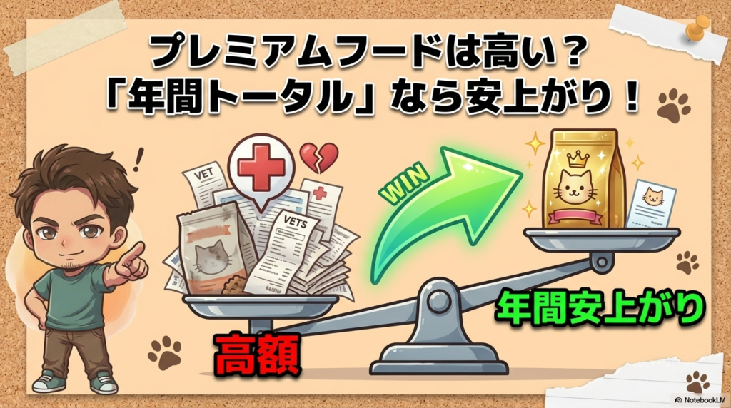 • コスパは年間トータルで計算する:安いフード+通院費 vs プレミアムフード、答えは出てる