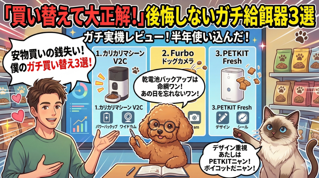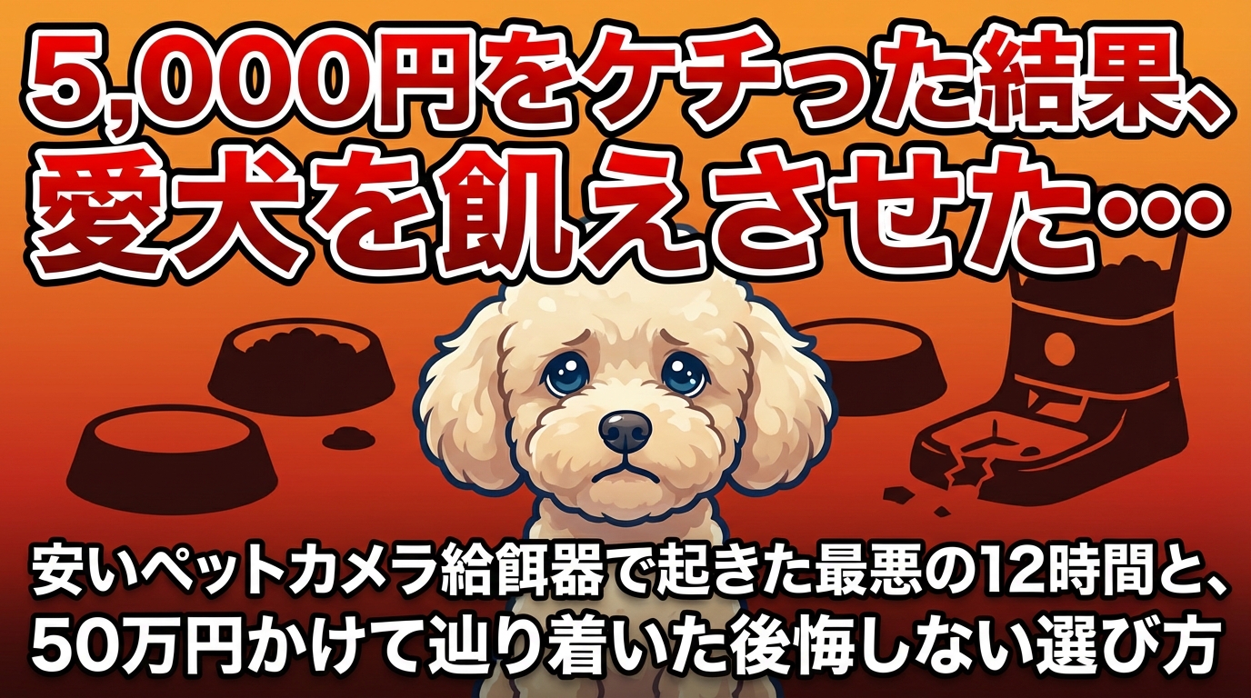 この記事では、安いペットカメラ付き給餌器で僕の身に実際に起きた「最悪の12時間」の全記録と、同じ後悔をしないための具体的な対策をすべて伝える。