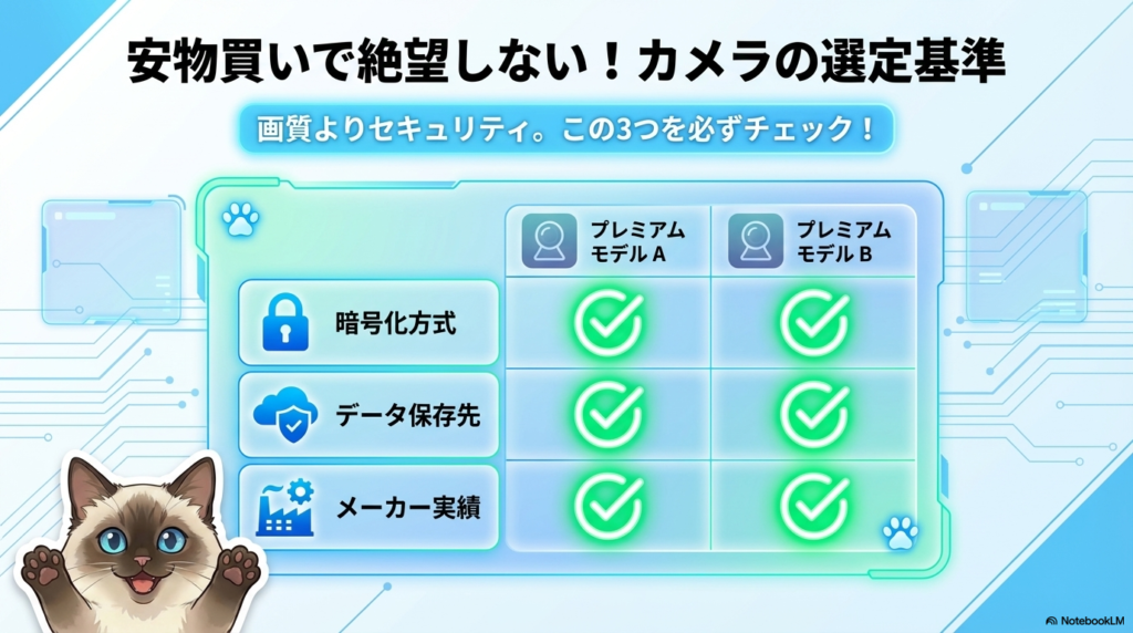 Amazonのレビューには「画質がいい」「設定が簡単」とは書いてあっても、セキュリティについて言及しているレビューはほぼ皆無だ。僕がIT PM目線で重視する3つの基準を紹介する。