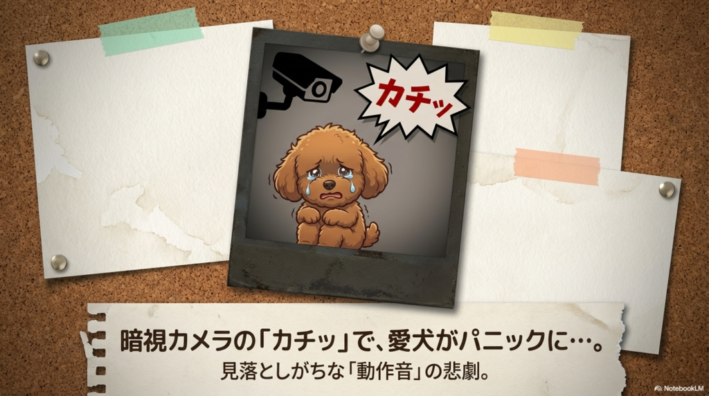 ペットカメラの「動作音」はスペック表に記載されていない。赤外線切り替え音・首振りモーター音は、音に敏感なペットにとって大きなストレス源になる。購入前に必ず口コミで「音」に関するレビューを確認しよう。
